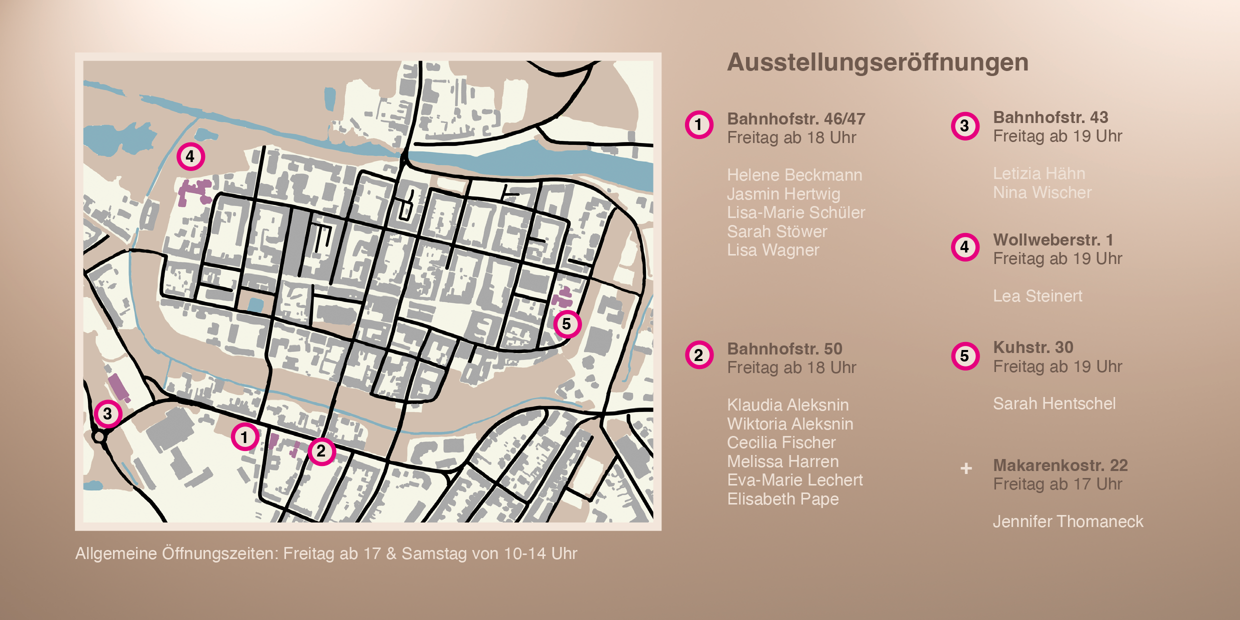 Ausstellende: Wiktoria Aleksnin | Klaudia Aleksnin | Helene Beckmann | Cecilia Fischer | Melissa Harren | Letizia Hähn | Sarah Hentschel | Jasmin Hertwig | Eva-Marie Lechert | Elisabeth Pape | Lisa-Marie Schüler | Lea Steinert | Sarah Stöwer | Jennifer Thomaneck | Lisa Wagner | Nina Wischer